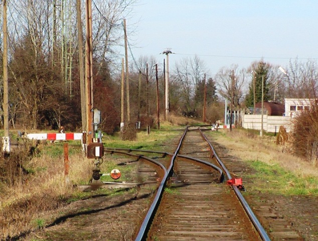 A baloldali vágány a rakodótér végeztével befejeződik, a másik tovább folytatódik. Úgy tűnik, a helyiek egy része elkezdte megbontani a vágány sóderes töltését.