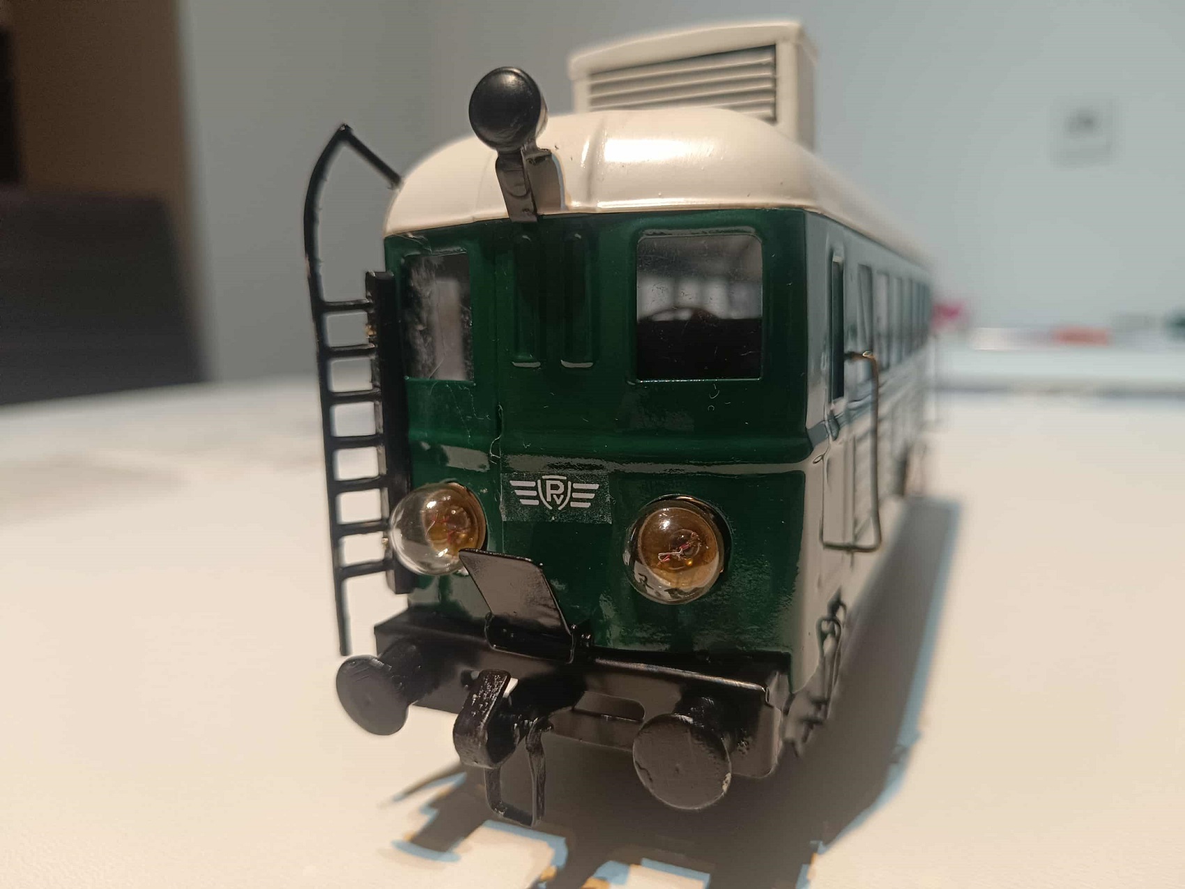 Láttam már sokféle pénzverdei átalakítást és többek között AB-t is csináltak már – személykocsiból. Nekem egy nagy bajom azzal viszont volt: nekem, pokolian szögletes volt a tető része. Én megfordítottam a dolgot, úgy voltam vele, hogy mi lenne, ha az amúgy bájos, lekerekített tetejű Előre mozdony maradna az alap. Eleve benne van a hajtás, nem kell azzal nagyon mókolni, hanem helyette az ablakokkal kell kezdeni valamit, mert az ugye egy villanymozdonyon, nincs elég. Ezekkel a gondolatokkal a fejemben találtam rá tavasz végén Tóth Zoltánra, aki csak névrokona az ismert Tóth-féle vonalnak, a magyar pénzverdei világában. Szerencsére nem sokkal korábban sikerült vennem egy komplett rom szettet, viszonylag vakon. Azt sem lehetett tudni először, hogy egyáltalán maga a mozdony, működik-e.