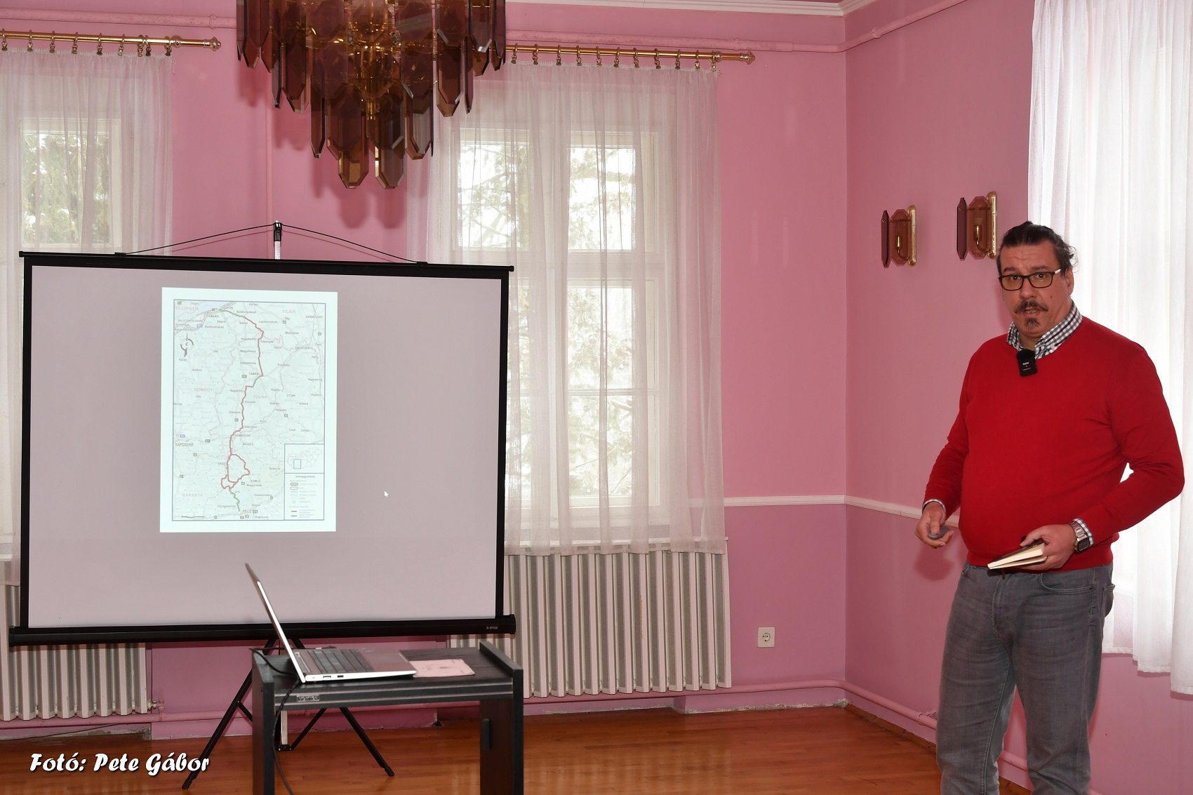 A végén nem kerekasztal beszélgetés végül nem volt, hanem Pálmai András tartott előadást a kerékpárút Tamási-Dalmand szakaszának engedélyezési és kiviteli terviről.