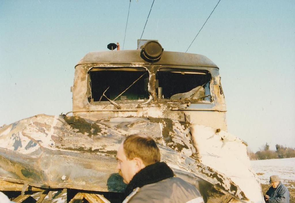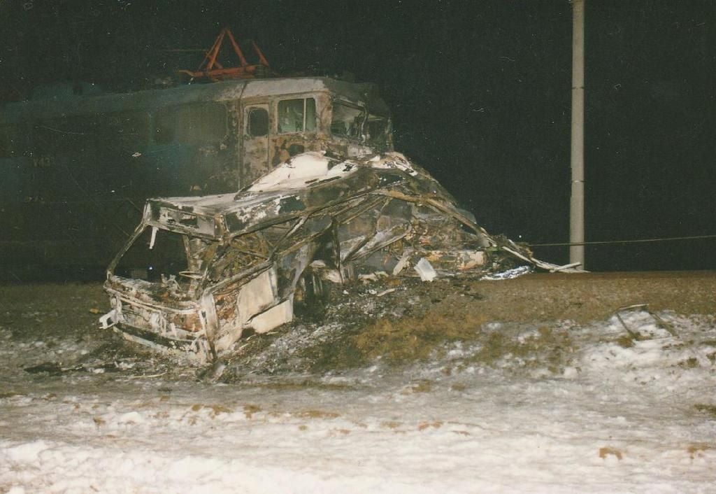 Az ütközés ereje rendkívüli volt. A mozdony kettészakította az EKR 075 rendszámú IKARUS 415 típusú autóbuszt, amely ekkor még csupán 2 éves volt és még a régi fehér-zöld fényezését viselte. A hátsó részét a busznak a mozdony a sínek mellé lökte, az első részt több száz méteren keresztül maga előtt tolta. A busz első része a felismerhetetlenségig összeroncsolódott és kigyulladt. Az ott utazók nem élték túl a balesetet.