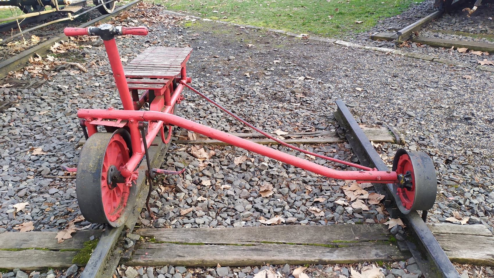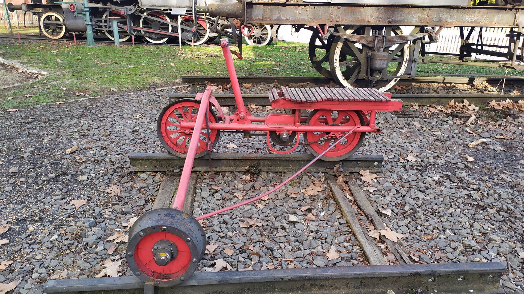 A vasúti mindennapok hangulatát idézi fel a parkban kiállított kézihajtány is. Ez a kézzel hajtott kis jármű a pályafenntartók munkáját segítette, akik ezzel járták be a vasúti vonalakat ellenőrzés vagy javítás során. A hajtány akár 15–20 km/óra sebességet is elérhetett, ami akkoriban gyors közlekedési eszköznek számított a síneken.